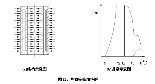 甚至流体结焦炭化。利用热管的热屏蔽特性可制成一种等温加热炉管,如图12(a)所示。由两根同心的内外管组成一个复合管,在内外之间还有一薄壁同心管组成热管内部工作液体循环通道。图反应,甚至流体结焦炭化。利用热管的热屏蔽特性可制成一种等温加热炉管,如图12(a)所示。由两根同心的内外管组成一个复合管,在内外之间还有一薄壁同心管组成热管内部工作液体循环通道。图12(b)所示为沿管长的温度示意,t1为外管壁温度,t2为热管内循环工作介质温度,t3为内管壁温度,t4为管内工艺流体温度,且t1 > t2> t3> t4。